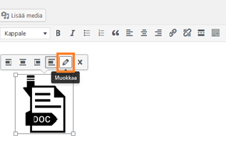 Kuvake on nyt linkitetty Word-tiedostoon. Kun lukija napsauttaa hiirellä kuvaketta, hän voi ladata tiedoston koneelleen.